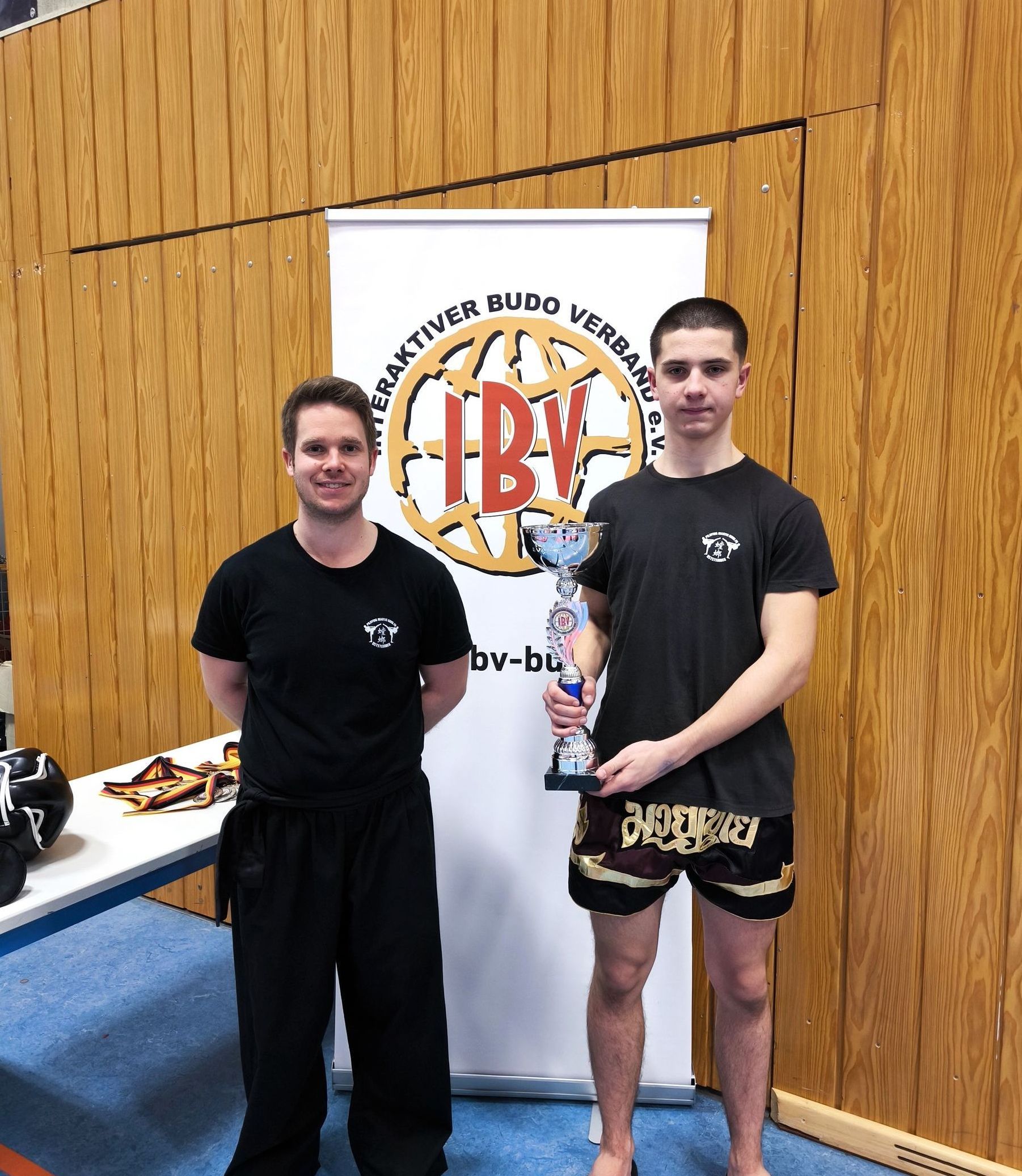 Tom Fitzner mit Melvin Hertel - Nach Bestehen seiner Schwarzgurtprüfung